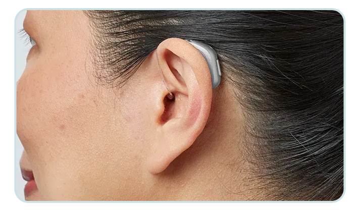 Often the most suitable option for severe to profound hearing losses and can be fitted with high quality custom fitted earmoulds to maximise amplification and minimise interference and feedback.